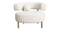 The Paris Armchair in Bouclé is a luxurious blend of elegance and comfort. This chair features a rounded back that offers a soft, embracing contour, perfect for lounging or conversation. Upholstered in a plush, textured bouclé fabric, it brings a sophisticated, tactile quality to any room. The golden legs add a touch of modern glamour and contrast beautifully with the soft, neutral tones of the fabric. Whether placed in a living room, office, or lounge area, this armchair exudes timeless style and refined comfort. Ideal for those looking to add a touch of chic, contemporary flair to their space.